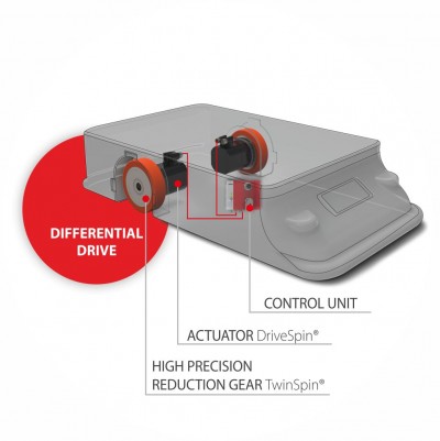 SPINEA® Drive units offer a possibility of a single traction unit (differential drive) or complete traction unit with implemented steering part.