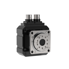 The DriveSpin® DSF “flat” series of electric actuators is characterized by the extremely short axial length with focus on maintaining the key features of the DriveSpin®. The DSF series was designed to be the most compact solution with very low mass and small dimensions. The DS “Flat” series consists of TwinSpin® reduction gear, servomotor and various feedback systems to be fully compatible with customer requirements. The DriveSpin® reduction gear used in the DSF actuators secures high accuracy, positioning repeatability, torsional stiffness as well as high carrying load due to the implemented bearing systems. Rated torque range of the DSF series is from 12 Nm to the 85 Nm.