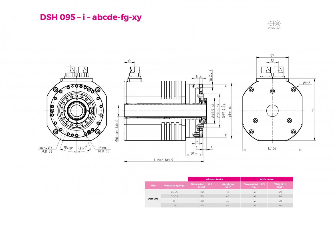 The DriveSpin® DSH electric actuators are characterized by the short axial length and by the possibility to use a through hole for routing cables, pipes, and drive shafts. Fully sealed compact actuators equipped with zero-backlash reduction gears have high power density and large hole inner diameter, from 8 to 40mm. Excellent positioning accuracy and positioning repeatability. DSH maintain radial-axial and torque load capacity and are known for high overload capacity of reduction gear and AC servomotor, featuring high dynamics. The voltage and feedback variability will widely satisfy all customers requirements. This allows even demanding tasks such as exact positioning or fast movement of heavy loads, to be performed with a high degree of repetitive accuracy. Rated output torque is within 18 Nm - 420 Nm.