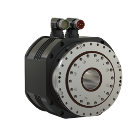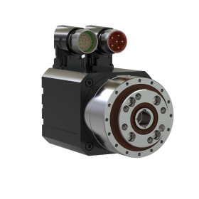 The DriveSpin® DSH electric actuators are characterized by the short axial length and by the possibility to use a through hole for routing cables, pipes, and drive shafts. Fully sealed compact actuators equipped with zero-backlash reduction gears have high power density and large hole inner diameter, from 8 to 40mm. Excellent positioning accuracy and positioning repeatability. DSH maintain radial-axial and torque load capacity and are known for high overload capacity of reduction gear and AC servomotor, featuring high dynamics. The voltage and feedback variability will widely satisfy all customers requirements. This allows even demanding tasks such as exact positioning or fast movement of heavy loads, to be performed with a high degree of repetitive accuracy. Rated output torque is within 18 Nm - 420 Nm.