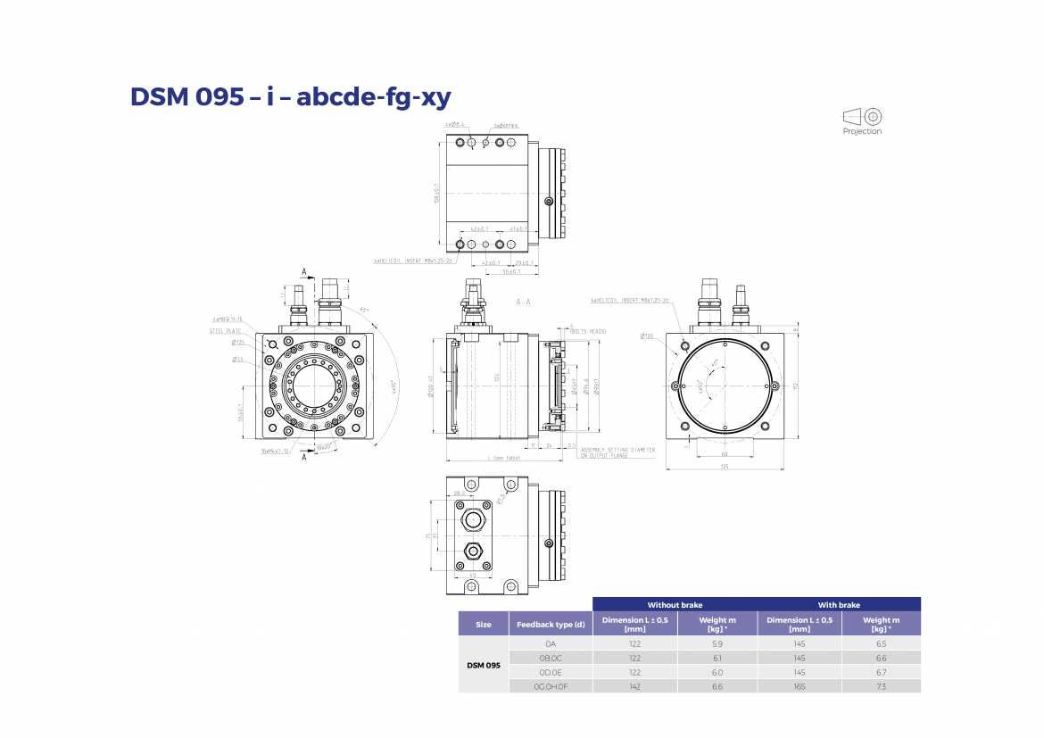 The DriveSpin® DSM modular rotary positioning modules provide controlled rotary motion and transfer of torque with a high positioning accuracy and precision. The output flange of the module allows capturing both radial and axial forces. The modules feature a special design, which allows versatile connections, also without additional devices. Actuators can be combined in many ways using the modular system. The simple design integration ability and small dimensions allow creating kinematic assemblies from DSM modules for end effectors, but also for additional devices and positioners. The selection of a module size depends on the required load-carrying capacity and the number of degrees of freedom of the motion axis. The DSM Series is characterized by simple and quick assembly and reduces overall cost. Compact design ensures optimum mounting options and application possibilities, even in confined installation spaces. These actuators are used in applications with request of high torque density, precision and dynamics. Rated output torque is from 18 Nm to 122 Nm.