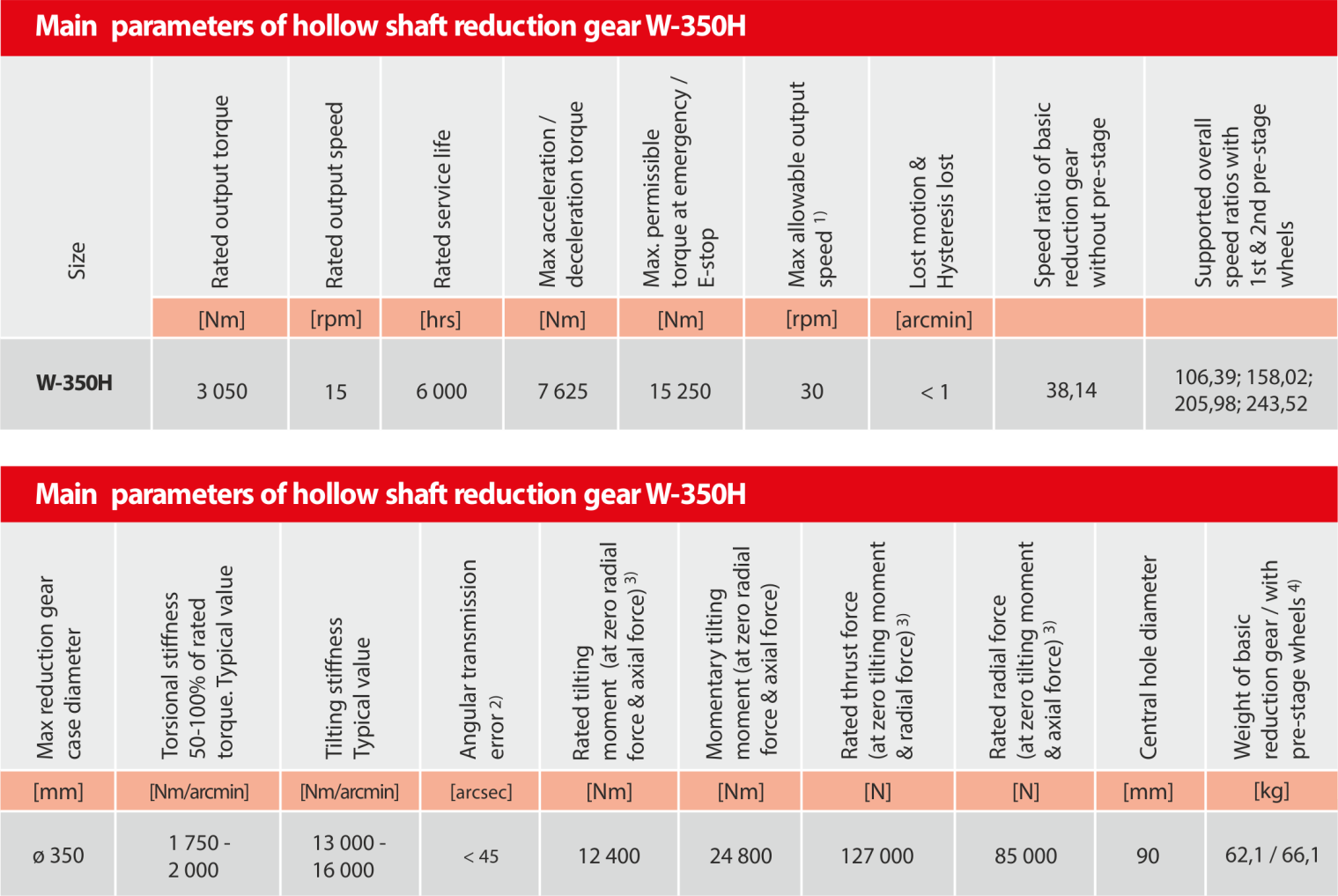 4) The parameter values are informative. Exact value depends on the specific version of the reduction gear